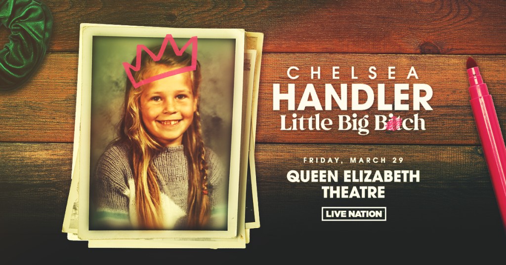 Chelsea Handler *SECOND SHOW ADDED* Where Queen Elizabeth Theatre Map When Mar 29/24 07:00 PM - Mar 30/24 11:00 PM Age All Website https://www.ticketmaster.ca/event/11005F50D5EA4C9E LIVE NATION PRESENTS: CHELSEA HANDLER Little Big B**ch Tour Friday, March 29th – Queen Elizabeth Theatre – SOLD OUT Saturday, March 30th – Queen Elizabeth Theatre – TICKETS HERE