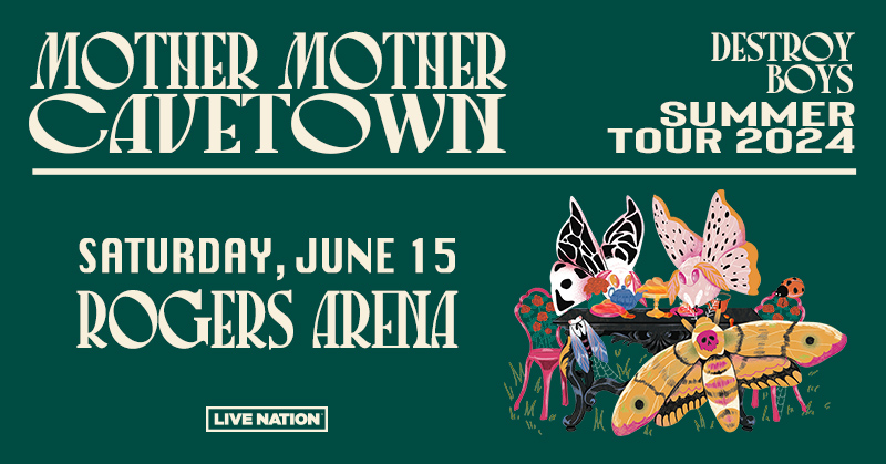 Mother Mother Where Rogers Arena, Vancouver Map When Jun 15/24 07:00 PM - Jun 15/24 11:00 PM Age All Website https://www.ticketmaster.ca/event/11006030E0CE20C0 LIVE NATION PRESENTS: MOTHER MOTHER WITH CAVETOWN & DESTROY BOYS June 15th, 2024 – Rogers Arena – Tickets available here