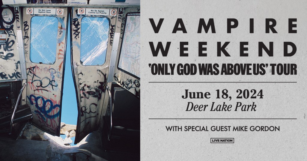 Vampire Weekend Where Deer Lake Park, Burnaby Map When Jun 18/24 06:00 PM - Jun 18/24 11:00 PM Age All Website https://www.ticketmaster.ca/event/1100604DEC383F3D Live Nation Presents: Vampire Weekend June 18th, 2024 – Deer Lake Park – Tickets Available Here