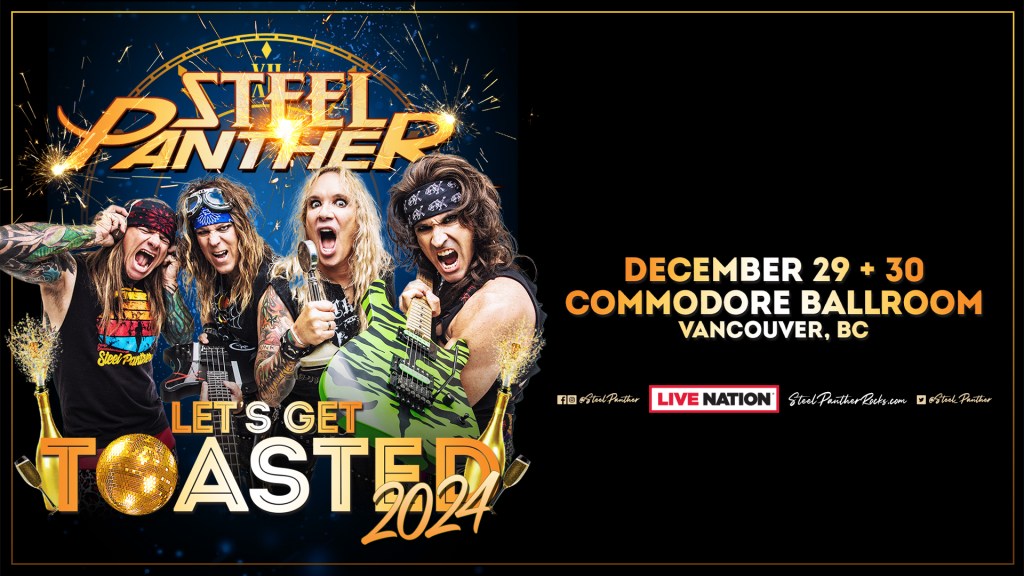 Steel Panther Where Commodore Ballroom, Vancouver Map When Dec 29/24 12:00 AM - Dec 30/24 11:00 PM Age All Website https://www.ticketmaster.ca/event/11006142819C1986 Live Nation Presents: STEEL PANTHER The ‘Let’s Get Toasted’ Holiday Shows! December 29th & 30th – Commodore Ballroom – Tickets For Show One Here – Tickets For Show Two Here