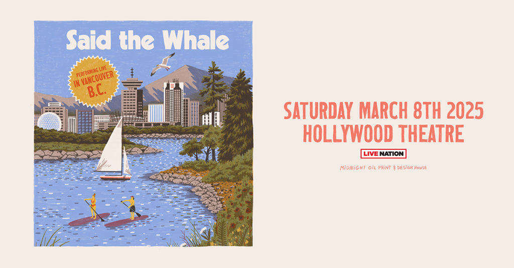 Said The Whale Where Hollywood Theatre, Vancouver Map When Mar 08/25 07:00 PM - Mar 08/25 10:00 PM Age All Website https://www.ticketmaster.ca/event/1100615CBF2824E7 Live Nation Presents: Said The Whale 2025 Tour with special guest XYZ March 8th, 2025 – Hollywood Theatre – Tickets Here