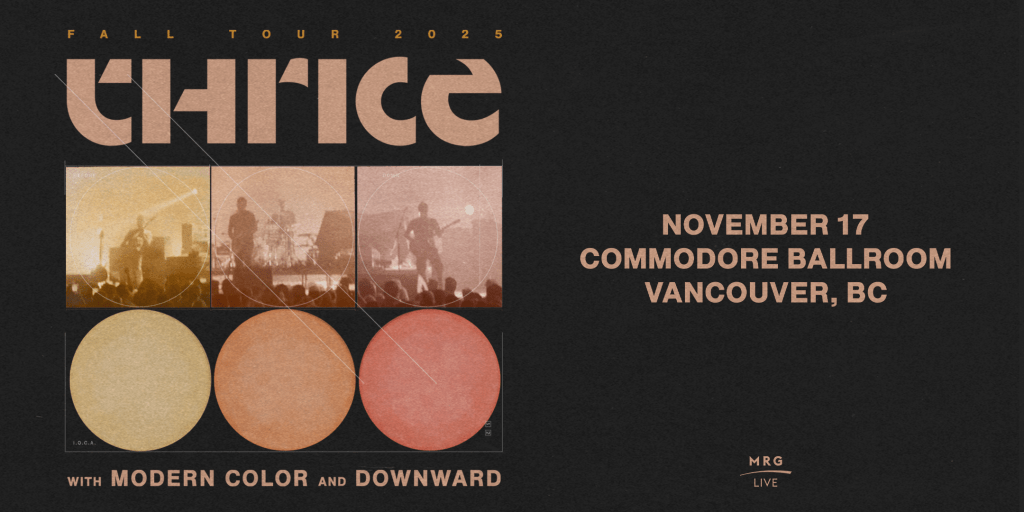 MRG presents Thrice with Downward and Modern Color at the Commodore Ballroom on Monday November 17th 2025.