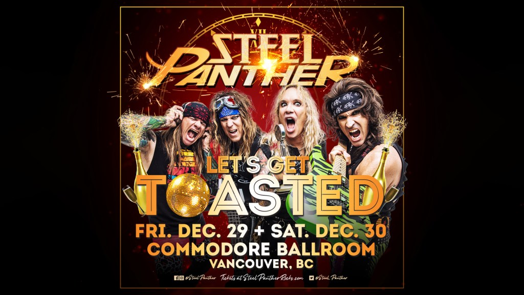 Steel Panther Where Commodore Ballroom, Vancouver Map When Dec 29/23 07:00 PM - Dec 30/23 09:00 PM Age All Website https://www.ticketmaster.ca/event/11005F4DA35E3A86 Live Nation presents: STEEL PANTHER “Let’s Get Toasted” Holiday Party December 29th and 30th at The Commodore Ballroom Tickets available here for December 29th Tickets available here for December 30th