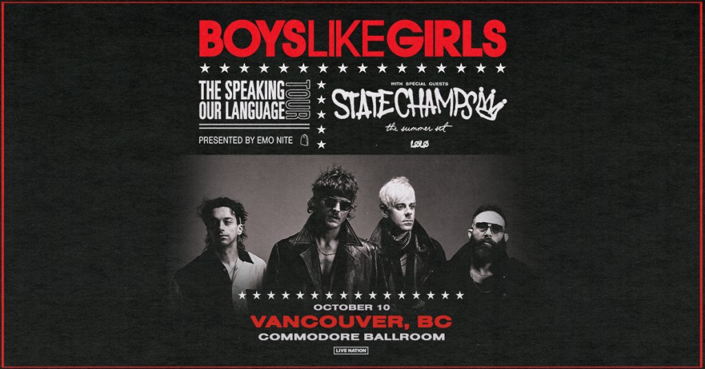 Boys Like Girls Where Commodore Ballroom, Vancouver Map When Oct 10/23 06:00 PM - Oct 10/23 11:00 PM Age All LIVE NATION PRESENTS: BOYS LIKE GIRLS October 10th at the Commodore Ballroom Tickets available here!