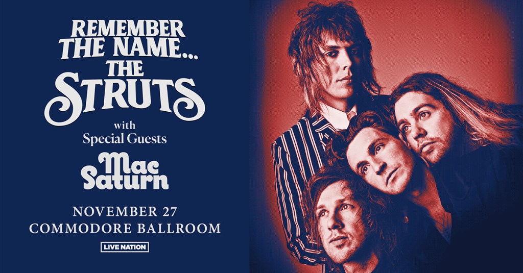 The Struts Where Commodore Ballroom Map When Nov 27/23 06:00 PM - Nov 27/23 11:00 PM Age All LIVE NATION PRESENTS: THE STRUTS COMMODORE BALLROOM November 27th, 2023 – Tickets available HERE!