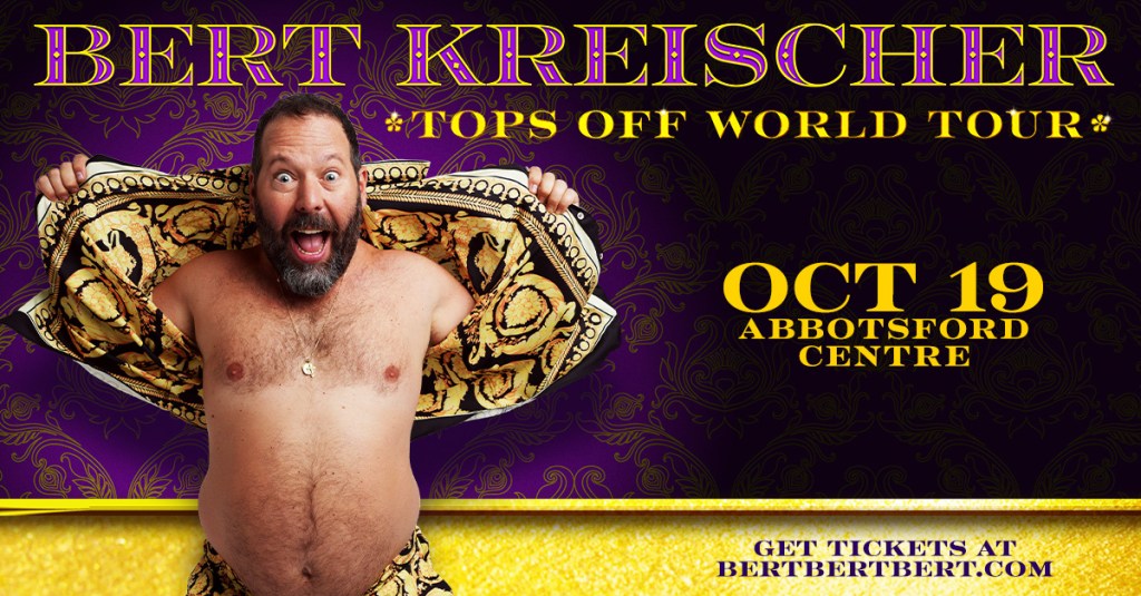 Bert Kreischer Where Abbotsford Centre Map When Oct 19/23 06:00 PM - Oct 19/23 09:00 PM Age All Website https://www.ticketmaster.ca/event/11005EF5F1D5474C Bert Kreischer – Tops Off World Tour October 19th – The Abbotsford Centre Tickets here!